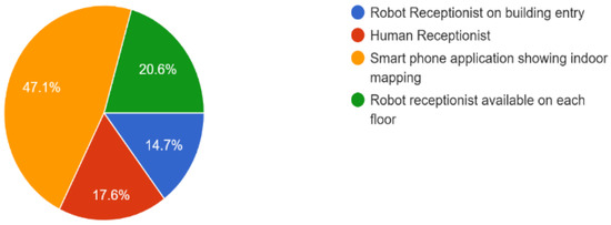 The survey analysis results also prove that in the future, people will want indoor mapping and robot receptionists for multistory buildings, as shown in Figure 15.