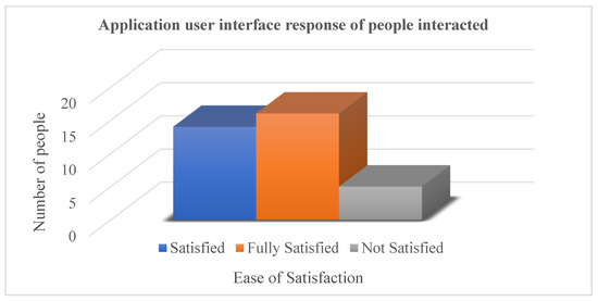 Application graphical user interface was designed by keeping in mind ease of access and less interaction on screen by adding automatic face detection and speech recognition. Out of 35 responses, only 14% of users were not fully satisfied, while the remaining 86% of users gave a positive review of the GUI, as shown in Figure 16.
