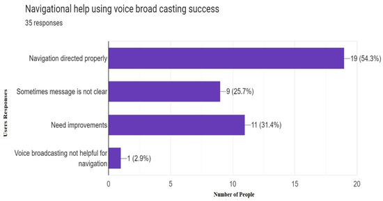 Response of accuracy of navigational help using voice broad casting (35 Responses).