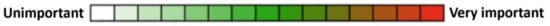 Color coding of space classification importance index ranking from unimportant (white) to very important (red).