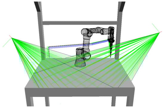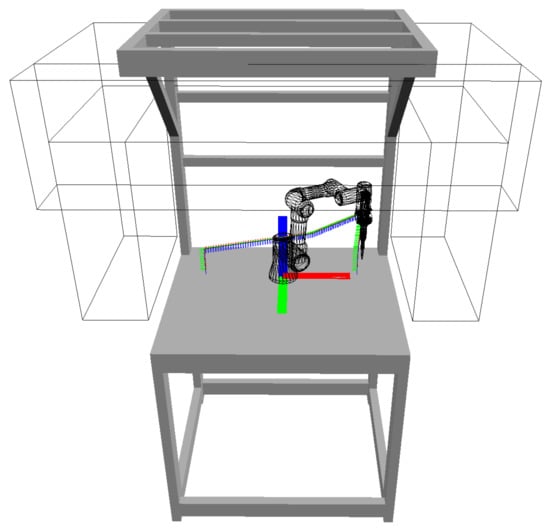 A disadvantage of camera systems is the possibility of obscuring their surveillance area [29]. The robot’s movement and the operator’s activity can obscure this space during the operation. This creates a volume in the workspace that is not monitored; thus, it cannot be clearly determined whether or not an obstacle is present, which may lead to a collision. Eliminating or minimising the shaded volume of the workspace can be achieved by increasing the number of cameras and by choosing their appropriate placement [25].