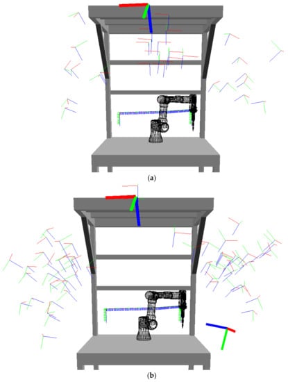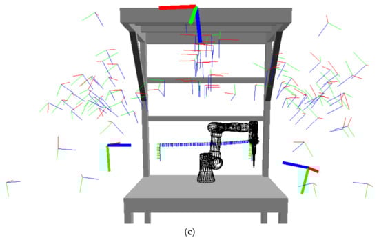 In real applications, there are always some limitations on possible camera locations, given by the presence of some other equipment, human worker movements, available mounting supports for the cameras and their connection, etc. For our experimental workplace, these limitations are fulfilled by placing the cameras only inside any of the bounding boxes visualized in Figure 14.
