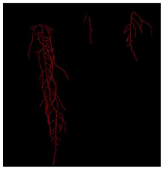 Nondestructive crop monitoring typically utilizes a combination of traditional and modern computer vision methods, including pixel-based image processing, magnetic resonance imaging (MRI), X-ray tomography, 3D image construction, and machine and deep learning [3,4,7,8]. Moreover, these methods are popularly combined together to phenotype RSA automatically in both controlled and field environments. Plants grown in controlled environments have been placed in clear containers or gel media to easily and nondestructively examine RSA using imaging systems [4]. Specifically, segmenting roots from their background in 2D images using deep learning models has been popular to accurately and clearly visualize root health and temporal development, and to gain a comprehensive understanding of RSA [6]. Several works have addressed segmenting roots from their background using a combination of traditional and modern computer vision methods.