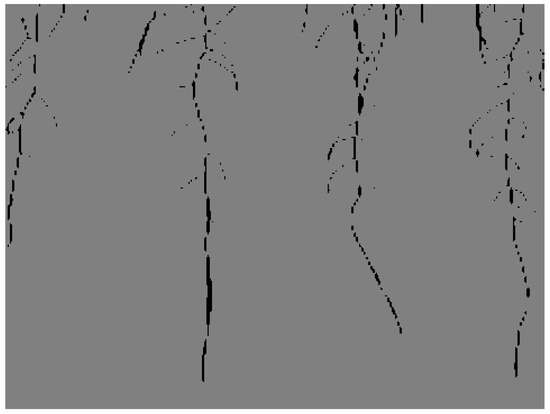 Our segmentation results from our trained SegNet model show some gaps along the main root and lateral roots. To address this issue, we manually post-processed the segmentation results to close the gaps between main root and lateral roots. We chose a small image patch from our segmentation results and manually searched for gaps by converting the results to binary matrix similar to Figure 3, saved the matrix to a CSV file, and recorded the coordinates of the gaps’ endpoints. We defined each branch and main root as arrays of endpoints’ coordinates and connected the gaps between the endpoints by drawing white lines using PIL.