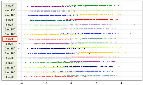 Visualization of LDA results by shooting conditions (The red box indicates the height and angle at which the mean of the gradient magnitude, hue, and saturation LDA is the highest).