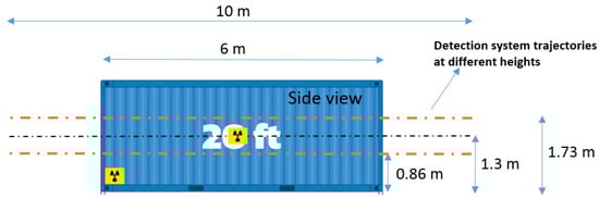 To facilitate transportation via ships, rails or trucks, standard steel containers are used, which are 20 foot and 40 foot long. Some inspection techniques are available based on the cargo documentation check, a physical search of the container (which is very time consuming), and by deploying non-intrusive imaging (e.g., X-rays or gamma rays). Despite the advantages of non-intrusive imaging, such as faster detection times and preselection of containers for physical searches, expensive equipment is used and operation and maintenance costs have to be taken into account. For example, in European ports, only about 10% of incoming containers are scanned, and of these, only 2% are physically searched [7]. While a complete scan of a container can take, on average, less than one minute, in the case of an alarm, the secondary inspection is normally carried out manually with a handheld radioisotope identification device (RIID) that may take up to twenty minutes. If the secondary inspection is inconclusive, a third and more exhaustive inspection is made by certified radiation experts and implies unpacking the container (this may take 3 h for a 40-foot long container). Scanning transshipments is also a challenging task, since the containers are offloaded from one ship and loaded into another ship without passing through the RPMs (which are normally located at the seaport exit/entrance points) [6].