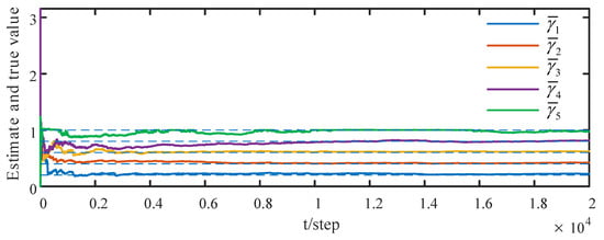 When the attack rates and the variances of the deception attack signals are unknown, we replace , in (16), (22), and (23) by , . According to the consistency of identification, i.e., , , the following consistency estimates can be obtained: