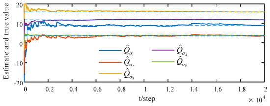 Under no network attacks, the self-tuning estimation problems have been studied for systems with unknown parameters and/or noise variances in the past decade [25,26,27,28]. In this paper, only the attack rates and noise variances of the stochastic deception attack signals are unknown. If the model parameters and noise variances of systems are also unknown, the recursive extended least-squares and correlation function can be employed for the identification of unknown model parameters and variances of multiplicative noises, additive noises, and stochastic deception attack signals. This may be more complex, and will be further investigated in future studies.