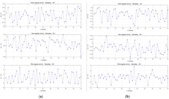 Different attitude commands were executed on the turntable to simulate the shaking conditions during the launch of an LV, and the alignment results obtained are shown in Table 7.