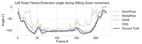 For all time series of joint angles, mean absolute error (MAE) and Pearson’s correlation coefficient () were calculated between the estimation from D3KE and the ground truth.