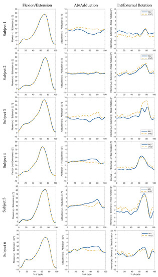 - McGrath, T. and Stirling, L. Body-worn IMU-based human hip and knee kinematics estimation during treadmill walking. Sensors 2022, 22, 2544. [Google Scholar] [CrossRef]