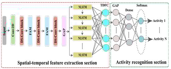 - In the STC-NLSTMNet model, DS-Conv extracts spatial features, FAM focuses on the most relevant spatial features, and NLSTM explores the hidden inherent temporal features. Thus, the representation capability of the STC-NLSTMNet model is improved to accurately recognize human activity.
