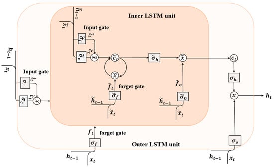 NLSTM [52] is a factor of RNN model with multiple levels of memory. In contrast to staked LSTM, NLSTM is nested together LSTM units. NLSTM is used due to its features of good robustness and generalization power in different domains. NLSTM explores the inherent temporal features in the inputs to capture high-level features. The operation of a memory cell in an NLSTM is mimicked by a standard LSTM cell. The function of the output gate in LSTM is to encode the memory, which is not even relevant at the current time-step, and to remember it for future use. Similarly, NLSTM utilizes adopt it to create a temporal hierarchy of memory and can access the inner memory immediately, but uses a selection approach for longer-term information, which is only relevant occasionally. The schematic diagram of NLSTM is shown in Figure 6.