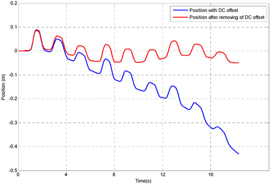 An alternative technique of removing offsets and low-frequency changes in offset is to apply a HP filter. Figure 15 shows that the low-frequency fluctuations after double integration are about 0.05 Hz.
