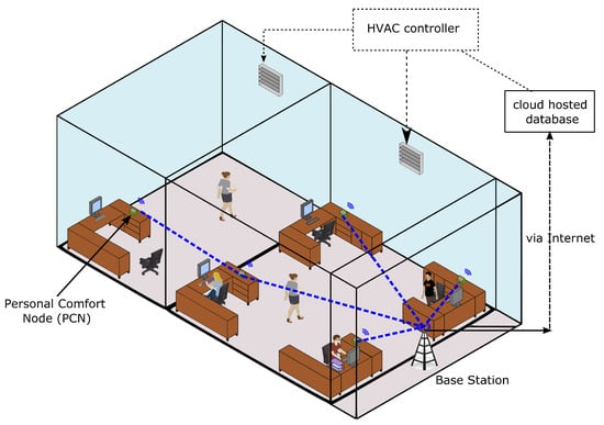 The primary purpose of HVAC control systems is to provide healthy and thermally comfortable indoor climates for occupants []. Thermal comfort is defined as “that state of mind which expresses satisfaction with the thermal environment” []. A key challenge in providing thermal comfort to building occupants is the lack of thermal comfort sensors. A host of factors affect a person’s perception of comfort []. For instance, the well known Fanger’s comfort index depends on variables, such as the metabolic rate and clothing insulation [], and these variables are impossible to measure with current technology in a manner that does not disrupt an occupant’s normal activity.