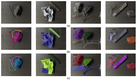 The actual detection results of the model before and after data augmentation using the method in this paper are shown in Figure 18. It can be found that after the data augmentation, the foreign object detection effect is significantly improved, and the segmentation contour is clearer while effectively reducing the phenomenon of false detection and missed detection.
