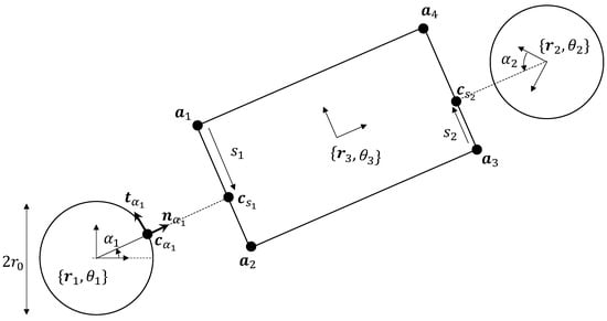 With reference to Figure 1a, given the point of contact at obtained using defined above, in our simplified case, we observe that the tangent is aligned with the frame , , i.e.,