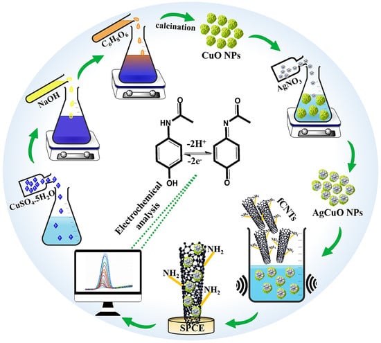 Illustration of AgCuO NPs/fCNTs preparation for APAP detection.