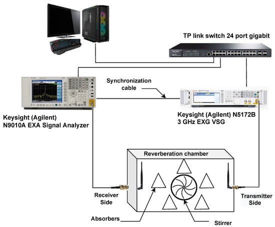 Figure 3. Laboratory equipment setup connection for multi-path emulation using reverberation chamber.