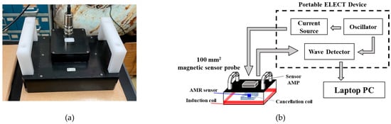 (a) 100-mm2 sensor probe; (b) ELECT measurement system.