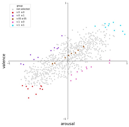 For listeners with a different preferred genre of music, we see a statistically significant difference in terms of valence ratings. Interestingly, the differences are between the classical genre and each of the other groups. Namely, between classical and rock (), classical and pop (), and classical and other (). As compared to the other three genres, participants who prefer classical music mostly rated valence closer to the origin. Other groups tended to give higher positive valence ratings.