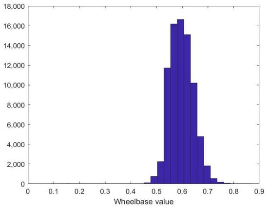 In addition to the wheels locations in the video frames, we also investigated the distance between wheel centers or wheelbase. The wheelbase is the horizontal distance between the centers of the front and rear wheels. The wheelbase is crucial for vehicle stability on the road and impacts the turning circle of a vehicle. Vehicles with a longer wheelbase are more stable at highway speeds but become more difficult to turn in tight turns. In Figure 9, the wheelbase histogram is demonstrated. From the the plot, it is clear that the wheelbase usually lies between and of the bounding box dimension. In our experiments, the bounding boxes’ coordinates are thresholded to filter out the wrong wheel detections and find the wheels that make sense physically. In particular, the thresholds applied on the coordinate and the wheelbase are optimized to achieve the highest wheel-detection accuracy. To that end, we utilized parameter optimization loops to iterate over different thresholds in reasonable ranges. This pre-processing step is referred to here as “Wheel Selection”.