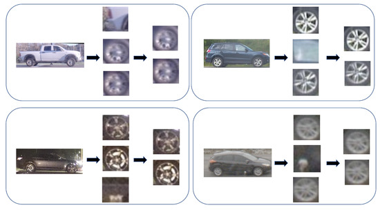 Recent developments in computer vision and deep learning have provided many possibilities in developing efficient Vehicle re-ID models. Fine grained extraction re-ID methods [9] can highlight the discriminative features in different spatial locations. Most vehicle re-ID models use Convolutional Neural Networks (CNNs) to automatically extract and optimize features [10,11,12]. In [10], a Region Aware deep Model (RAM) was proposed to embed the detailed visual cues and extract features from local regions. In addition, a learning algorithm was proposed to jointly exploit vehicle IDs, types/models, and colors to train their model. In [11], the authors proposed a two-stage network for vehicle re-identification utilizing visual and spatio-temporal information. A Spatial and Channel Attention Network (SCAN) based on Deep Convolutional Neural Network (DCNN) was proposed in [12] to automatically locate discriminative regions on vehicles. The proposed model is composed of two branches; spatial and channel attention branch to refine feature maps. In [13], part-regularized feature preserving method was introduced to enhance the ability of subtle discrepancies by utilizing different vehicle parts for detection; lights, windows, and vehicle brand. Moreover, RNN-based Hierarchical Attention classification model for vehicle re-identification was proposed in [14]. Their frameworks introduces coarse-to-fine category hierarchical dependency to detect visual appearance cues such as windshield stickers and customized paintings. In [4], a framework was proposed for decision fusion utilizing Siamese networks to extract discriminating features from vehicle images and their associated wheels.