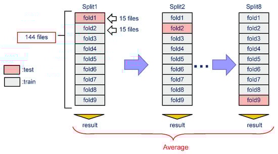To accurately evaluate model performance, we selected a test set representing the average proportion of BSs and noise in all recordings. To determine how accurately the model could detect BSs over noise, holdout and cross evaluation methods were used. The dataset was divided into nine folds, each containing BS data for 15 subjects with no overlap. For holdout evaluation, a single train-test split was run, meaning that only the first split was tested (‘Split1’ in Figure 3). This test was repeated five times. For cross validation, which runs multiple train-test splits, nine fold cross validations were performed with eight splits and uncorrected labels, and the average results were calculated.