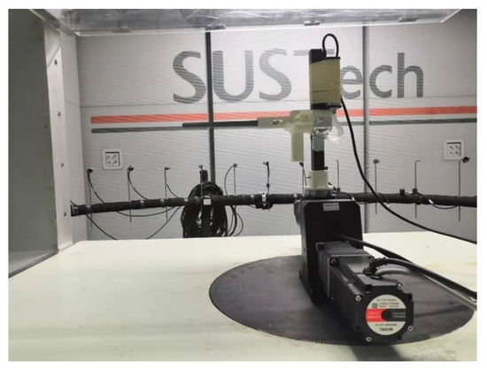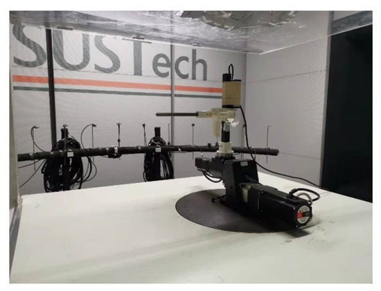 As for the selection of the experimental angle range, the tail-sitter VTOL must undergo attitude change during flight, which may cause it to encounter an angle of attack close to 90°. Thus, we want to get the same performance for the neural network approach at angles of attack ranging from 50° to 80° and even up to 90°. Therefore, the initial experimental plan was to set the variation range for both the angle of attack and the sideslip angle to −90° to 90°. However, due to the limitation of the wind-tunnel test section (Figure 7), we could only set the range of angle of attack to −50° to 80° and that of sideslip angle to −30° to 30°.