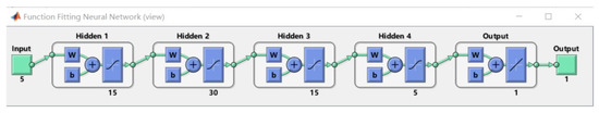 Then, the number of hidden layers and the number of neurons in each layer were selected. At present, there is no mature theory to help determine these parameters, so we could only choose them according to experience, mainly based on two empirical theories. The first is that the higher the number of hidden layers, the better the training effect and the longer the training time; the second is that the distribution of the number of hidden layer neurons has a better training effect if the number of neurons in the hidden layer changes from less to more, and then from more to less.