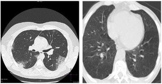 CT scan imaging modality is perceived by many scientists as the most efficient technique for screening for pulmonary diseases. One of the major differences between the CT scan machine and the X-ray machine is that X-ray machine uses a very small amount of radiation. The CT scan is more detailed, as it provides 3D images of tissues and organs, while X-ray provides 2D images. CT scan has shown to be more effective and sensitive in terms of imaging the chest, with outstanding spatial resolution. However, the limiting factors of using CT scan machine include exposure to high radiation and high cost [92]. The images of COVID-19 and normal cases are presented in Figure 6.