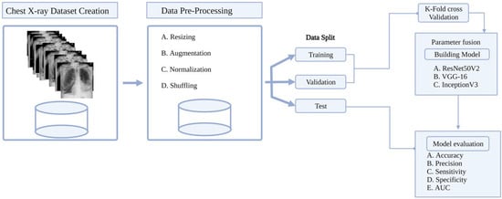 In order to address these issues, scientists merge radiographic imaging with computer applications to develop computer-aided diagnosis (CAD), which allows screening of thousands of images with high accuracy, precision, and specificity [10,11]. CAD has been shown to aid medical experts in the past in the detection of different types of cancer, such as breast cancer [12], colon cancer [13], prostate cancer [14], brain cancer [15], tuberculosis [16], bacterial pneumonia [17], non-COVID-19 viral pneumonia [18], and skin diseases [19].
