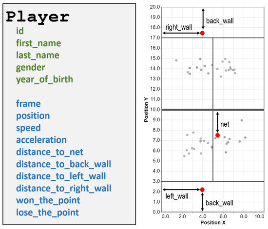 On a spatial plane, computer vision and other sensing techniques allow the automatic tracking of the players’ positions during a match. Therefore, the video-recorded match also contains the collection of player states, one for each frame, describing the position of the player within the court. These positions allow the computation of new parameters, such as speed, acceleration, distances to different court elements, and distance to the partner or opponent players.