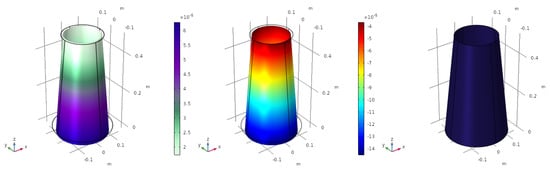 Considering real applications in the aerospace industry, two different study cases are analysed: static loading and vibration modes. The former is divided into two situations, pressure uniformly distributed and punctual loads applied at the bottom edge. In general, the sensor will be subjected to both kinds of forces, although they are studied independently. The latter analyses are based on the free vibration of the cone, to compute the participation of each mode for a pure dynamic case.