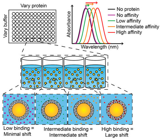 Abridged general view of the AuNS@PNM eye tears biosensor. When the protein concentration or affinity increases, the LSPR wavelength is expected to show a red shift. Reproduced with permission from reference [91]. Copyright 2018 American Chemical Society.