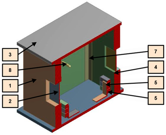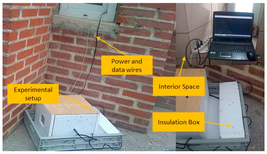 A laboratory scale experimental setup is employed for recreating the heat transfer that occurs in residential buildings. In this regard, a 300 × 300 × 250 mm enclosure is developed by employing common building materials.