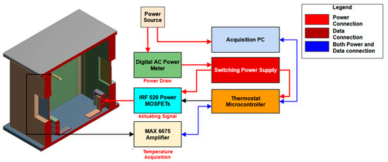 As seen in Figure 6, monitoring and control of the thermostat circuit is carried out by means of a microcontroller and an acquisition PC.