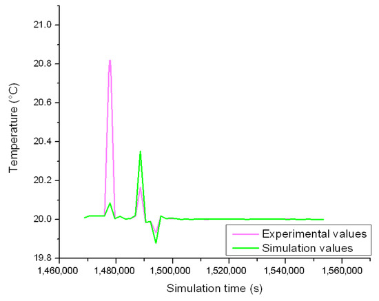 Figure 9 depicts the simulation model and an example of temperature gradients that occur at the fluid domain level when the heating elements are switched on at full power, with an ambient temperature of 18 °C.