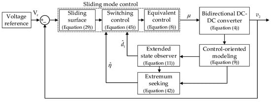 The rest of this paper is organized as follows. Section 2 presents the nonlinear model of the bidirectional DC-DC converter. Section 3 introduces the proposed control algorithm including mismatched disturbance estimation by ESO, voltage tracking and disturbance rejection by CSMC, switching parameter adaptation by ES, and stability analysis. Furthermore, the system setup and simulation results are given in Section 4. Ultimately, a conclusion is given in Section 5.