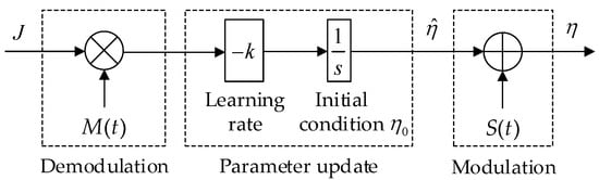 - Parameter update: updating the switching parameter by integrating the demodulated signal. This stage consists of a learning rate k, which determines convergence speed and accuracy. An optional low-pass filter could be added to this stage to filter out high-frequency noise from the demodulated signal.