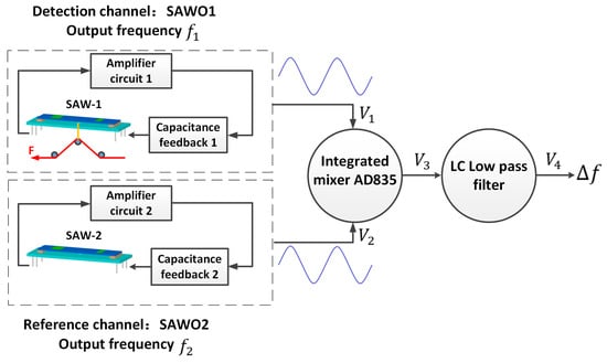 Figure 1 shows the dual differential surface acoustic wave oscillator system. It can be divided into three parts: