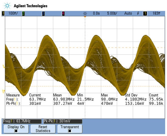 The mixing waveform is measured after the mixer AD835, as shown in Figure 9. Due to the complex harmonic components, disorderly waveforms, and broad-spectrum range in the waveform shown in Figure 9, differential frequency components with lower frequencies need to be extracted.