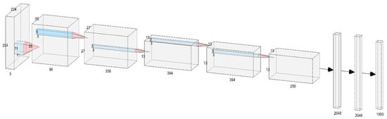 In 2012, AlexNet was launched []. Alex Net uses an eight-layer convolutional neural grid and won the ImageNet 2012 image recognition challenge by a large margin. The AlexNet model is a landmark model that is the dividing line between shallow and deep neural networks. The network model in this paper refers to the AlexNet model to some extent, and its structure is shown in Figure 1.