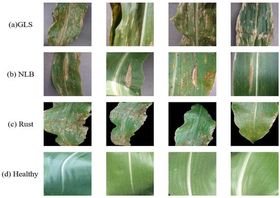 Wheat, corn, and rice are the three major food crops in the world. Among them, corn ranks third in the world in terms of planted area and production, after wheat and rice, and second in China after rice. Widely grown in tropical and temperate regions around the world, maize has a high nutritional value and is an excellent food crop and one of the indispensable raw materials for food, health care, light industry, and chemical industry []. Maize can suffer from a variety of diseases during growth that can seriously affect its value and cause economic losses to growers. For example, common ones include corn caudex leaf spot (GLS), corn stripe blight (NLB), and corn rust (Rust).
