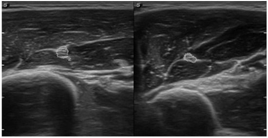 - Moran, L.; Royuela, A.; Perez de Vargas, A.; Lopez, A.; Cepeda, Y.; Martinelli, G. Carpal Tunnel Syndrome: Diagnostic Usefulness of Ultrasound Measurement of the Median Nerve Area and Quantitative Elastographic Measurement of the Median Nerve Stiffness. J. Ultrasound Med. 2020, 39, 331–339. [Google Scholar] [CrossRef] [PubMed]