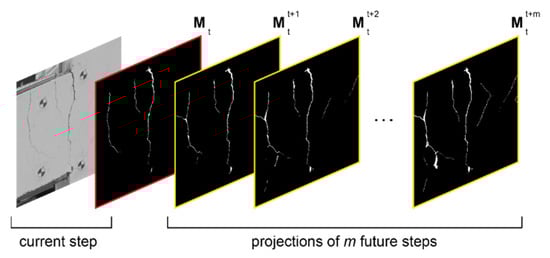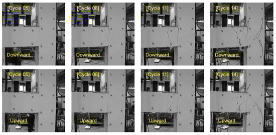 (Equation (15)). Additionally, only images of loading directions that are consistent with the current step are considered in data fusion. That is because the propagation of cracks in concrete elements depends on the direction of loading. As a result, during the upward and downward loading the geometry of crack patterns is different. As shown in