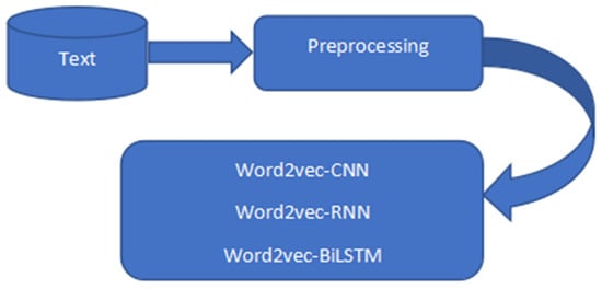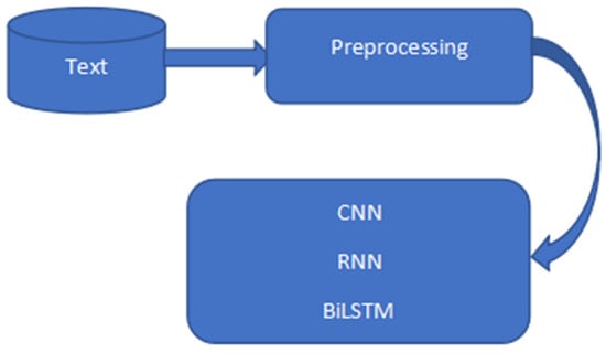 Neural network is a subset of machine learning with numerous applications such as compressed image reconstruction [], asset allocation [,], non-negative matrix factorization [,], and model predictive control []. With the development of transfer learning, G.E. Hinton introduced the concept of deep learning, and it is simply extracting features from raw data with the help of using layers []. The human brain affects neural networks, which are made up of numerous neurons and form amazing networks. Deep learning networks can be used to teach both supervised and unsupervised categories [,,,]. CNN, RNN, and many other networks with more than three layers are considered deep learning approaches. Text creation, vector representation, word representation estimation, sentence classification, phrase modeling, feature presentation, and emotion recognition benefit greatly from neural networks [,].