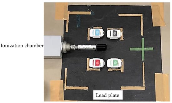 We used a diagnostic X-ray system featuring a high-frequency inverter generator (DHF-155H, Hitachi) to evaluate the i3 system. The total filtration of this X-ray system was 3.6-mm-aluminum equivalent. The distance from the X-ray tube to the i3 system was 180 cm, and the exposed area (the radiation-field size) at the i3 entrance was 30 × 30 cm. Variation in the sensitivity (batch uniformity) of i3 systems was evaluated by directly irradiating four i3 systems and an ionization chamber dosimeter simultaneously (Figure 3). Fluoroscopy was performed for 1 min under three conditions: (1) 65 kV tube voltage and 1 mA tube current, (2) 65 kV tube voltage and 0.1 mA tube current, and (3) 40 kV tube voltage and 0.1 mA tube current. These X-ray output conditions were to simulate scattered radiation (i.e., a low dose rate). To confirm reproducibility, all measurements were performed 10 times. An ionization chamber calibrated using the Japan national standard exposure dose (thimble type 6 mL; Model-9015, Radcal) was used to confirm the stability of the instrument.