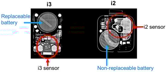 The angle dependency of the i3 system was good in both the horizontal (0 to ±75°) and vertical (0° to +65° and –90°) axes. The angle dependency of the i3 was better than that of the i2. Regarding the semiconductor sensor and the internal structure of the dosimeter, there is no detailed information disclosure from the manufacturer. Figure 10 shows X-ray photographs from the i3 and i2 dosimeters. We speculate that the X-ray sensor of the i3 dosimeter has improved angle dependency by being placed at the bottom of the sensor compared to the i2 dosimeter in which the sensor is located at the upper right side.