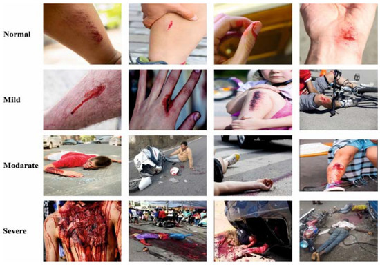 In this study, we examined the performance of the PPIE-ODLASC model using a set of accident images with four classes. For training purposes, we used the CADP dataset [32], which contains 1416 video segments composed from YouTube, with 205 video segments having full spatio-temporal annotations. For testing purposes, we used our own dataset collected from a real-time environment. It comprises 20,000 samples with four classes (normal, low, medium, and high) as represented in Table 1. Figure 2 defines the sample images of multiclass.